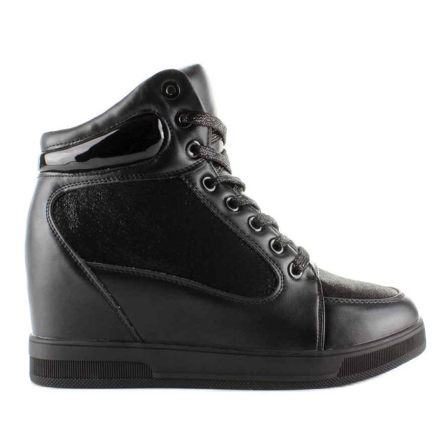 Découvrez un style et un confort uniques avec les baskets montantes 2017-3 dans une couleur noire classique. Ces étonnantes baskets pour femmes avec une cale cachée de 7,5 cm de hauteur allient élégance et design moderne. Fabriqués à partir de trois textures de matériaux - cuir écologique pleine fleur, tissu et insert verni à la cheville - ils offrent non seulement une apparence attrayante, mais également une ventilation et un confort de port adéquats.