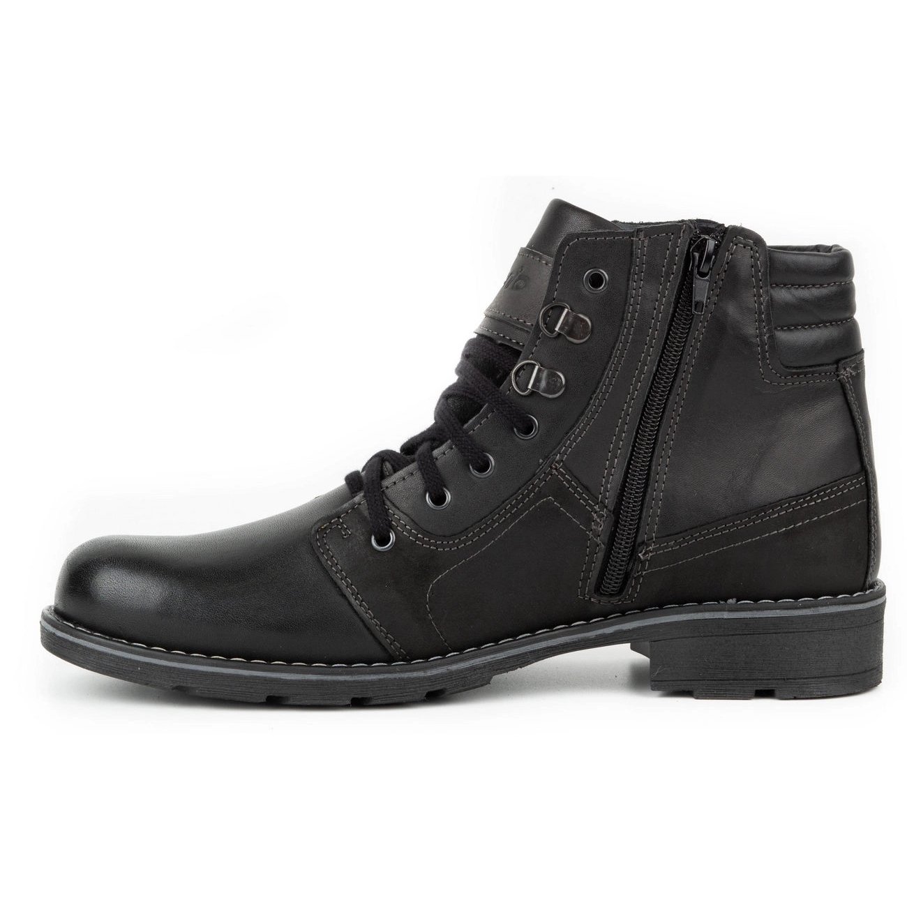 Mario Pala Snow Boots 323 - Chaussures militaires masculines, créées pour des hommes qui apprécient des solutions classiques et classiques. Le haut en cuir naturel combine la durabilité avec un aspect élégant et brut et l'isolation de la laine naturelle assure un confort thermique pendant les jours froids. Le modèle est équipé d'un laçage confortable et d'une fermeture éclair pratique, ce qui le rend plus facile à mettre et à s'adapter.