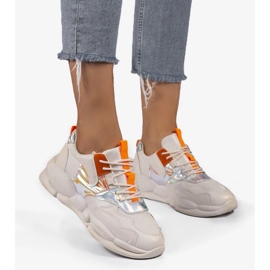 Des baskets modernes et universelles en cuir écologique, qui fonctionneront dans les stylisations urbaines quotidiennes et à la mode. La tige est décorée d'éléments réfléchissants en orange, qui ajoutent du caractère et améliorent la visibilité. Une semelle épaisse et synthétique avec une hauteur de la plate-forme de 4 cm garantit le confort et la stabilité, et le fermoir en dentelle et un nez rond assure la liberté et l'apparence classique.