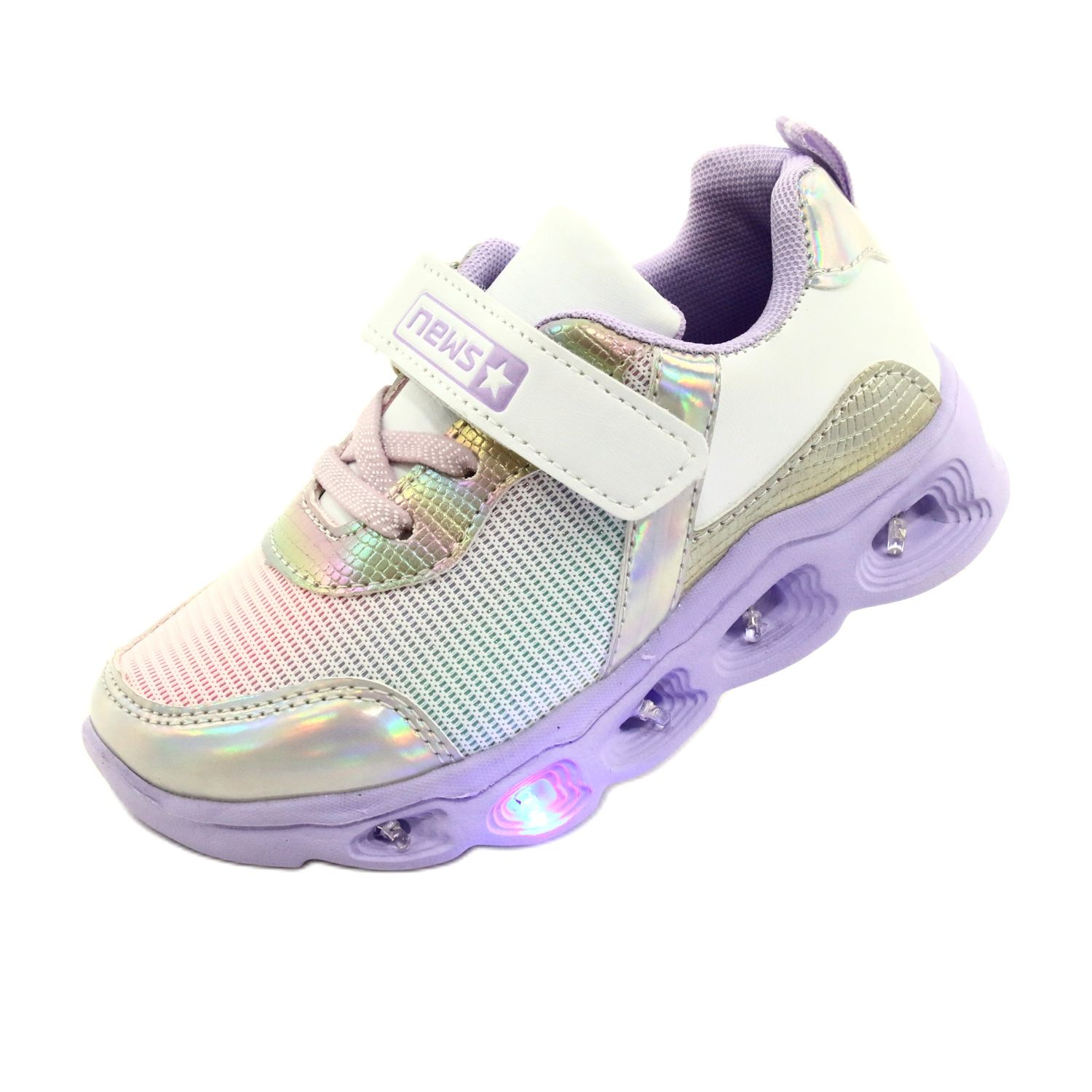 NEWS ADI Sports Chaussures LED Glowing Velcro News 22DZ32-4837 Lilas-Blanc violet rose argent