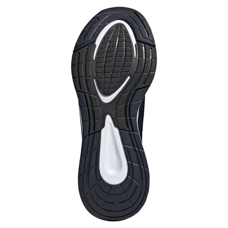 La semelle extérieure, faite de matériaux synthétiques, garantit une bonne adhérence sur les surfaces d'asphalte et les installations sportives fermées. En choisissant des chaussures EQ21 en bleu marine avec des accents blancs, vous combinez les fonctionnalités avec le style moderne. Parfait pour courir sur des surfaces dures, ce modèle sera irremplaçable dans l'entraînement quotidien.