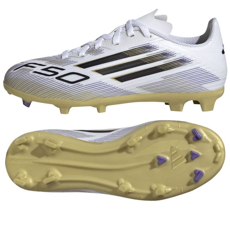 Découvrez la joie de jouer au football grâce aux chaussures de football Adidas F50 League FG / MG JHH7745 en blanc classique. Ces embouteillages juniors, idéaux pour l'herbe naturelle et artificielle, combinent le design moderne et la fonctionnalité, ce qui en fait un élément indispensable de l'équipement de chaque jeune athlète.
