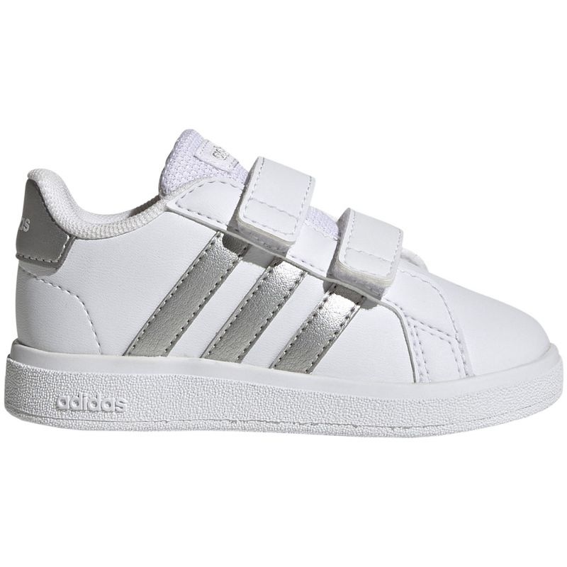 Les chaussures Adidas Grand Court 2.0 CF GW6526 sont le choix parfait pour les enfants actifs qui ont besoin à la fois de confort et de style. Ces chaussures blanches avec des accents argentés combinent le design de tennis classique avec une approche moderne du confort. Grâce à la conception légère, ils offrent une protection pratique pour les petits pieds tout en jouant et en découvrant le monde.