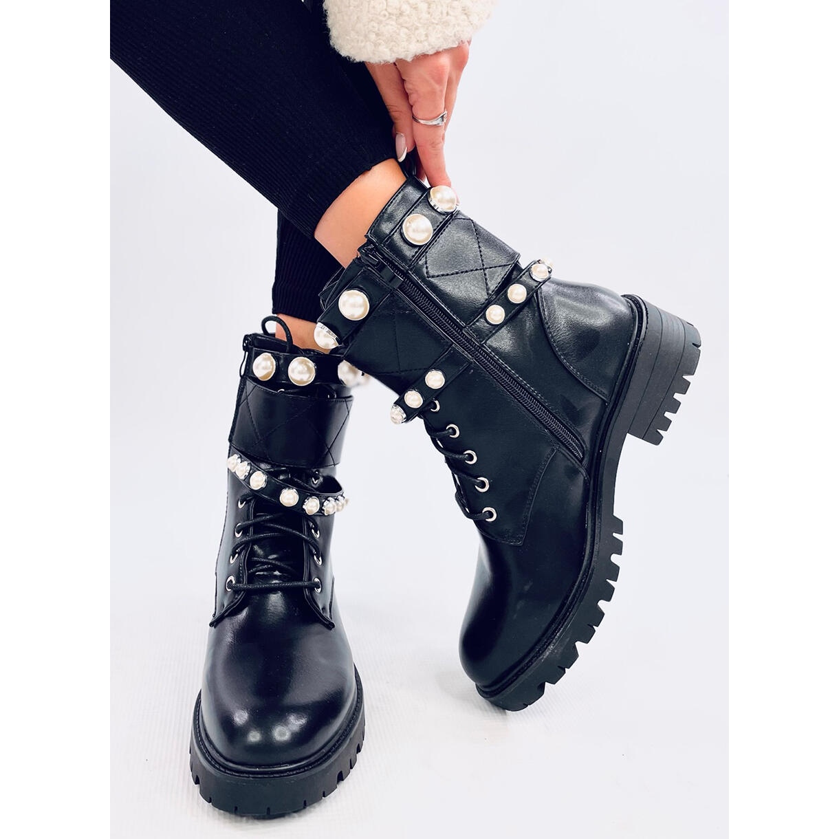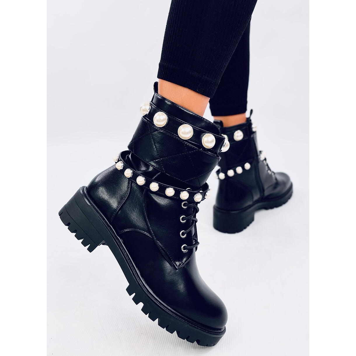 Découvrez le style unique et le confort de porter avec Glans avec des perles Alex Black! Ces bottes élégantes et en dentelle noire sont une combinaison parfaite de mode et de praticité. Ils se distinguent par des bandes spectaculaires avec des perles, ce qui attirera certainement l'attention et donnera à vos stylisations un caractère unique.