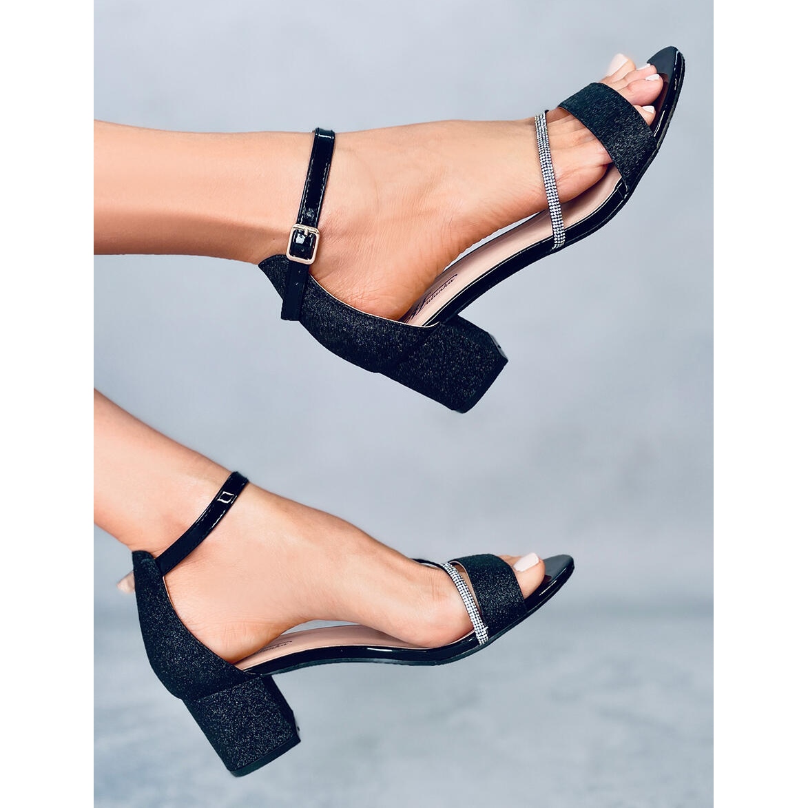 La particularité de ces sandales est leur finition brillante et pailletée, qui donne aux chaussures un éclat unique. La fermeture à boucle réglable épousera non seulement parfaitement votre cheville, mais la mettra également en valeur avec douceur, ajoutant de la subtilité à vos jambes.