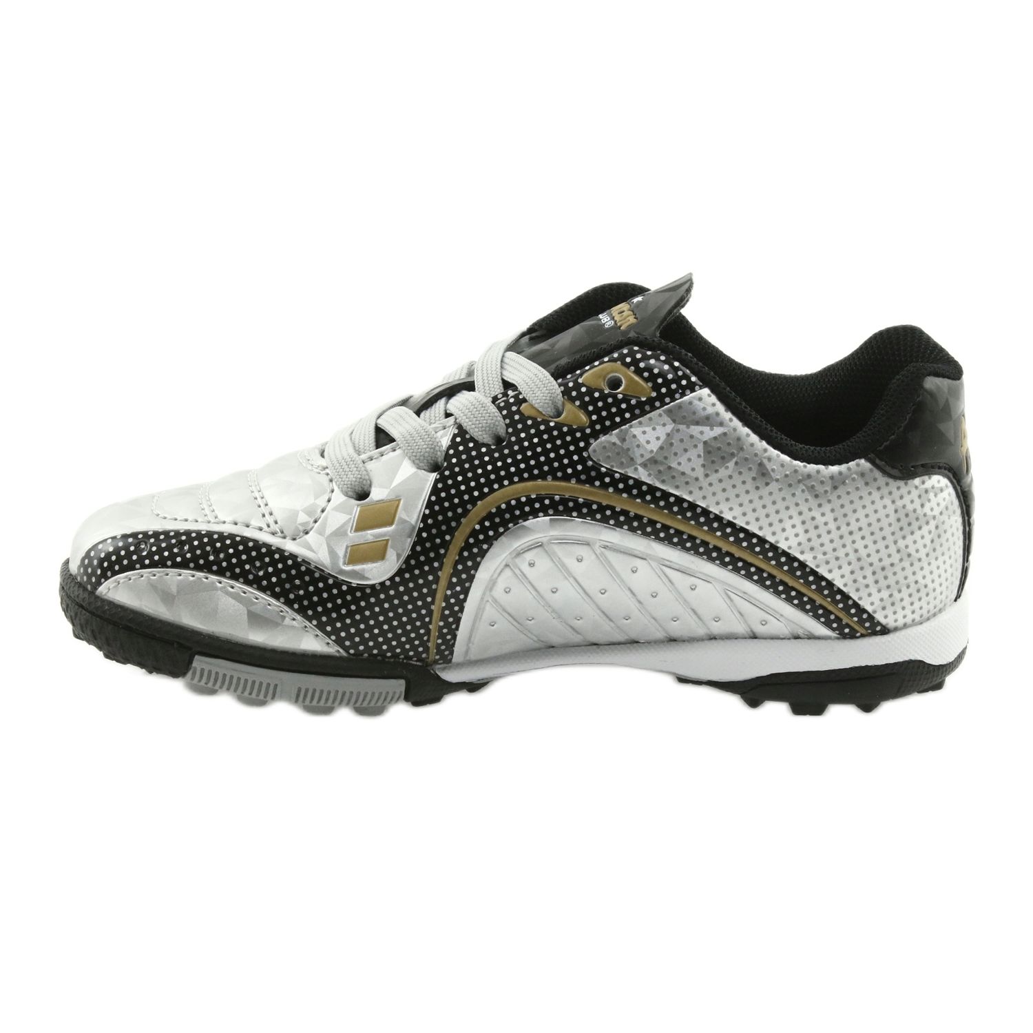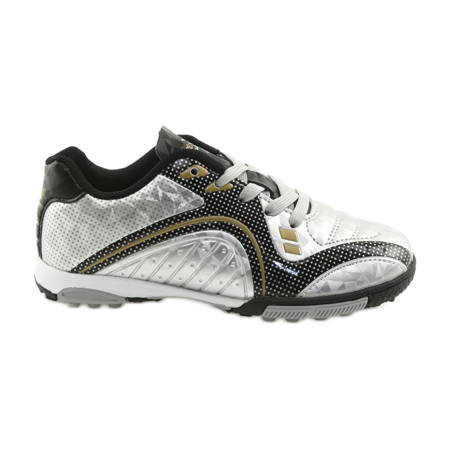 Turfy American Club OG29 est des chaussures légères et durables conçues pour jouer au terrain artificiel. Le haut en cuir écologique de haute qualité assure l'immunité et la facilité de nettoyage, tandis qu'un insert en tissu doux et une garantie de mousse supplémentaire garantissent le confort pendant l'entraînement long et les allumettes. La semelle avec bande de roulement a été conçue pour une adhérence maximale dans les Eagles, et des coutures solides et une finition minutieuse témoignent de la fiabilité de la marque American Club. Le fermoir sur les lacets vous permet de correspondre parfaitement à la chaussure au pied. Le modèle est disponible dans une couleur argentée spectaculaire avec des additifs noirs; Il apparaît également dans les versions avec des éléments d'or.
