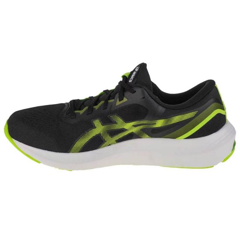 La palette de couleurs universelle, à dominante noire avec des accents verts, fait de ces chaussures de course Asics Gel-Pulse 13 M non seulement fonctionnelles, mais aussi un élément esthétiquement attrayant de l'équipement sportif. Le logo du fabricant, clairement visible sur le côté de la chaussure, souligne la qualité de la marque et le prestige des chaussures fabriquées.