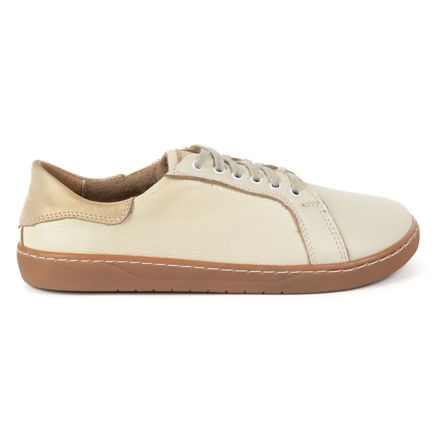 ** OLIVIER AURA: Sneakers en cuir aux pieds nus pour femmes crème chaussures confortables avec une semelle plate **