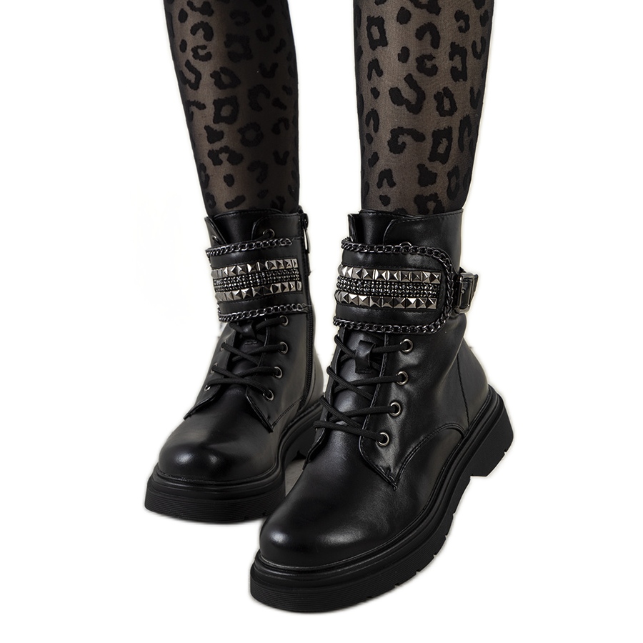 Les bottines Avenida se distinguent par un bout rond et une large plateforme de 4 cm de hauteur, ce qui leur confère un caractère unique. De plus, les clous à la mode constituent un accent intéressant qui mettra en valeur votre individualité. La fermeture éclair et les lacets sont des solutions pratiques qui facilitent leur enfilage et leur ajustement au pied.