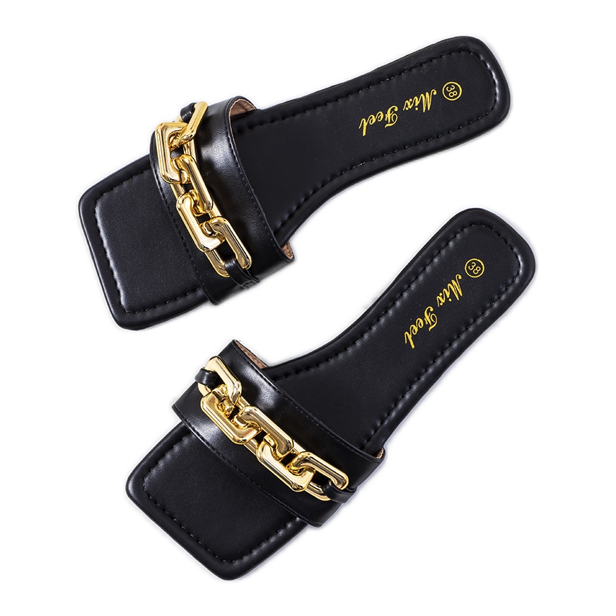 Détails: Babouches élégantes noires avec une chaîne Cherell