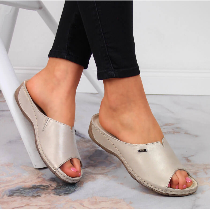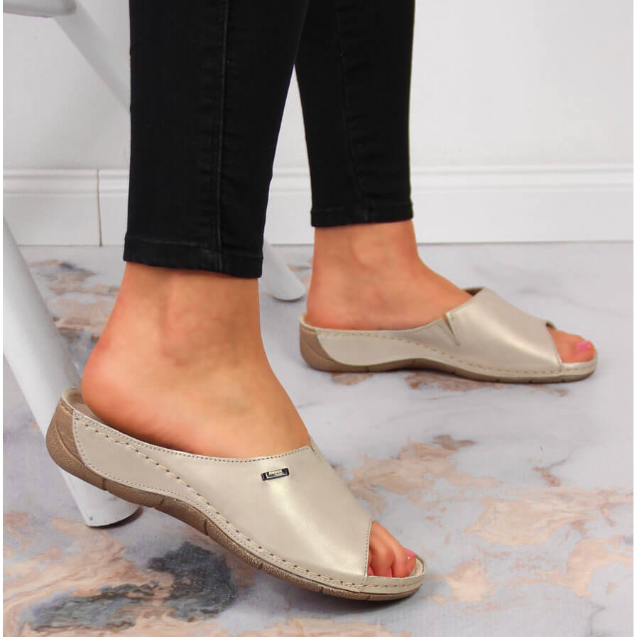 Helios Babouches femme en cuir sur semelle compensée dorée Helios 105 d'or