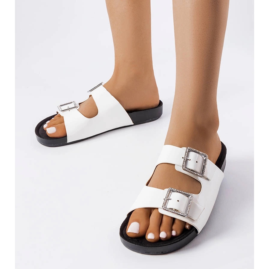 Des pantoufles vernies blanches sur la plate-forme Norcross - élégante et confortable pour l'été