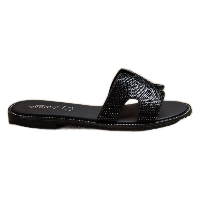 Les tongs Evento noires avec cristaux sont un choix parfait pour les femmes qui souhaitent allier confort et élégance. Ces tongs élégantes sont parfaites pour un usage quotidien, ajoutant un peu d'éclat à n'importe quelle tenue grâce à des strass et des cristaux soigneusement placés. Leur talon plat de 1,5 cm les rend agréables à porter, et leur talon ouvert les rend faciles à enfiler et à enlever.
