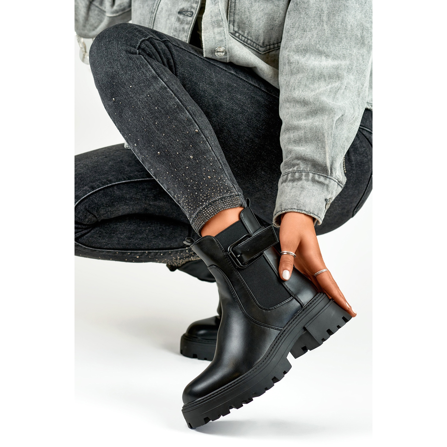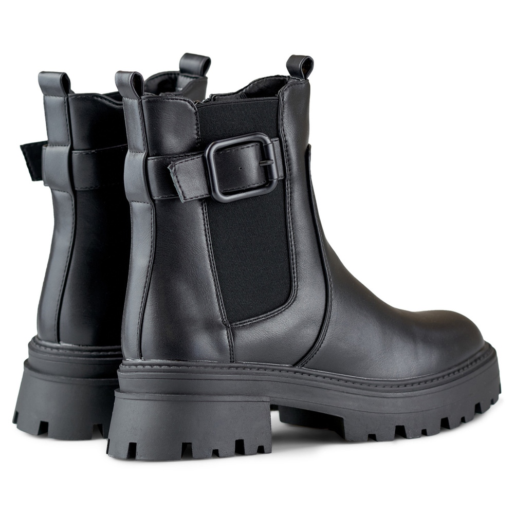 Les baggies classiques pour femmes sont un choix élégant pour une femme qui valorise l'élégance combinée à la praticité. Les chaussures sont noires, en cuir écologique. Ils sont dotés d'une fermeture éclair pratique et d'une boucle décorative supplémentaire qui ajoute du caractère. Les ouvriers ont une hauteur de plateforme de 5 cm et une hauteur de fût de 15 cm. Le modèle est isolé, ce qui le rend parfait pour les journées plus froides. La doublure de la chaussure est en fourrure écologique douce et chaude et la semelle intérieure est en tissu. Les chaussures sont légères, ne pesant que 1,2 kg. Les chaussures sont neuves, livrées dans l'emballage d'origine du fabricant. Le produit n'a pas de motif supplémentaire, ce qui souligne son style classique et universel. La couleur de la semelle est la même que celle de l'ensemble de la chaussure - noire. Les chaussures sont proposées par la marque « KeeShoes ».