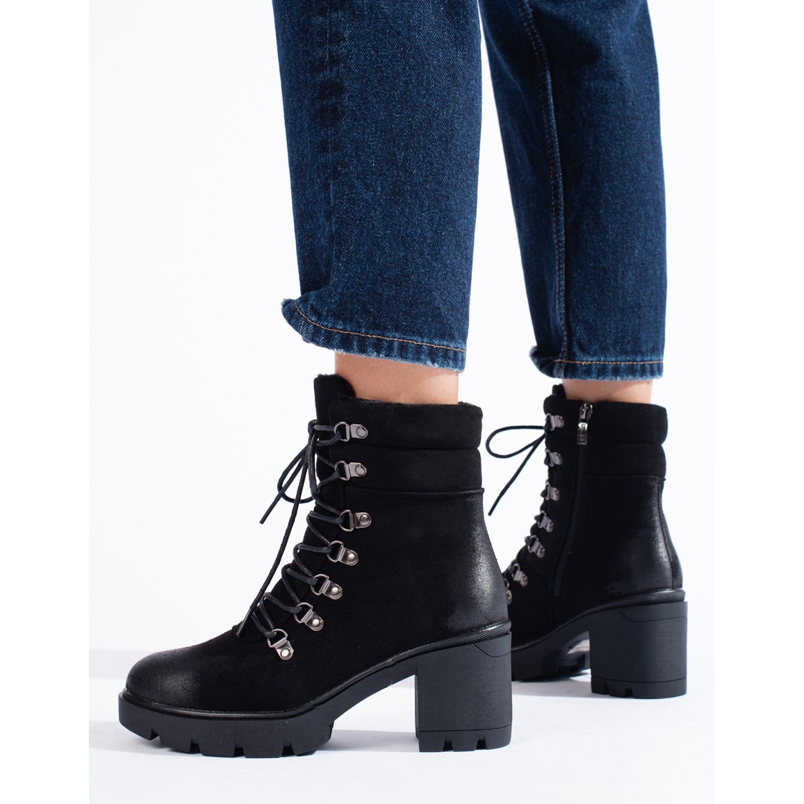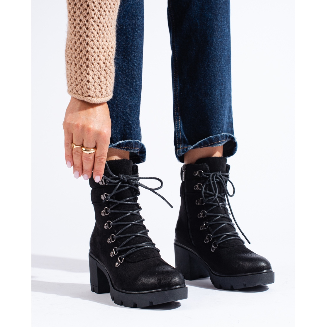 Grâce à l'isolation et à l'insert de couvre-chaussures, ces travailleurs sont parfaits pour les journées plus froides, offrant chaleur et confort. Un talon haut de 7 cm sur bloc ajoute de l'élégance et allonge optiquement les jambes, et des fermetures pratiques sous forme de fermeture éclair et de laçage permettent un ajustement parfait au pied.
