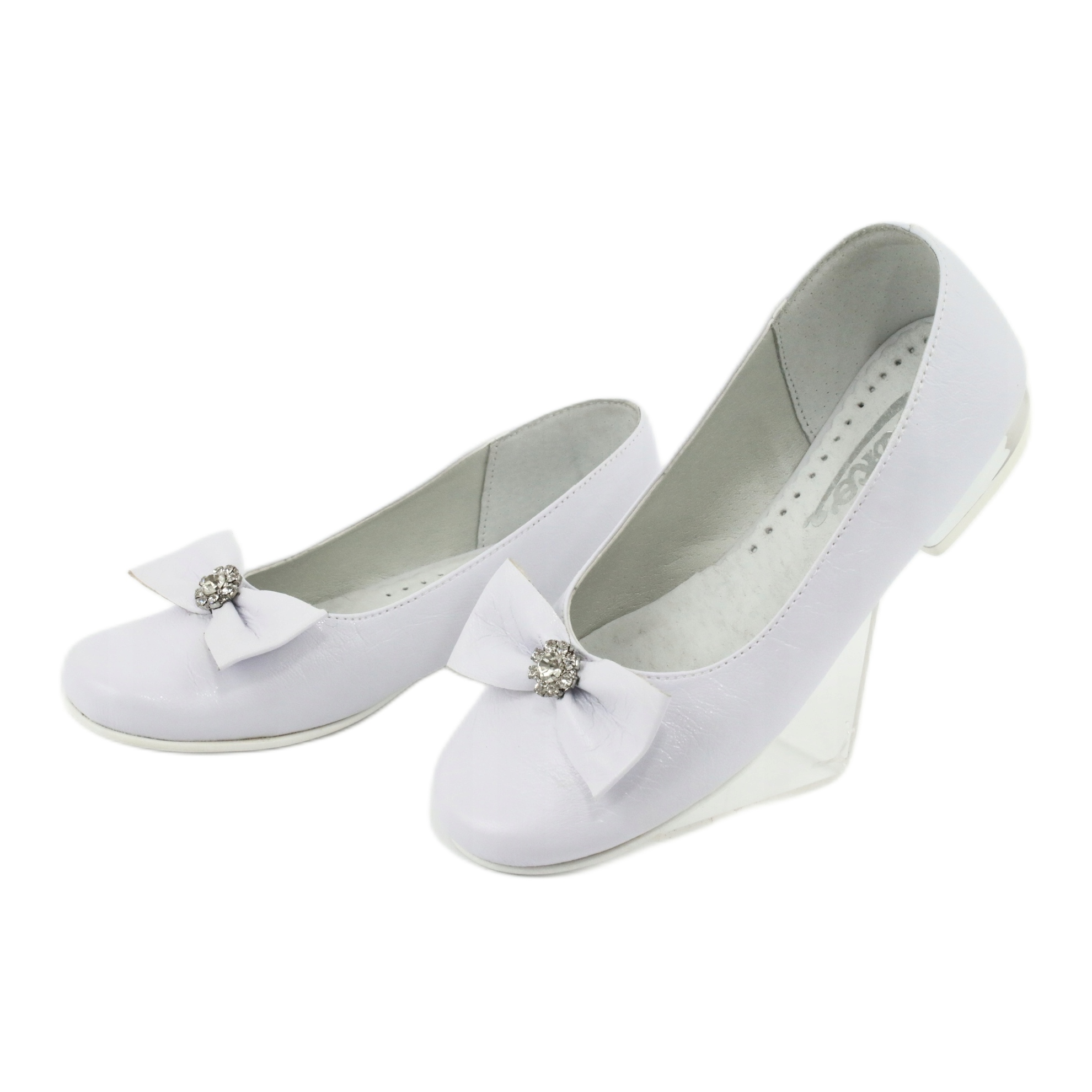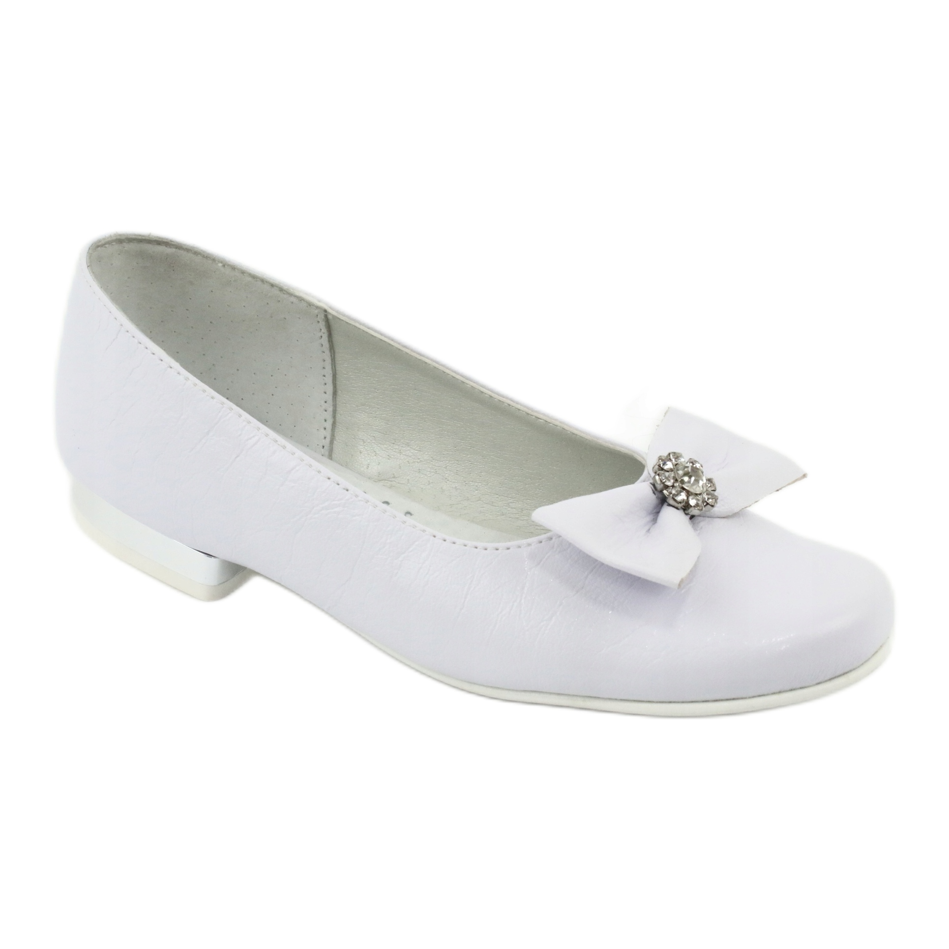 Miko Ballerinas de filles en cuir blanc Miko 800 avec un arc blanche