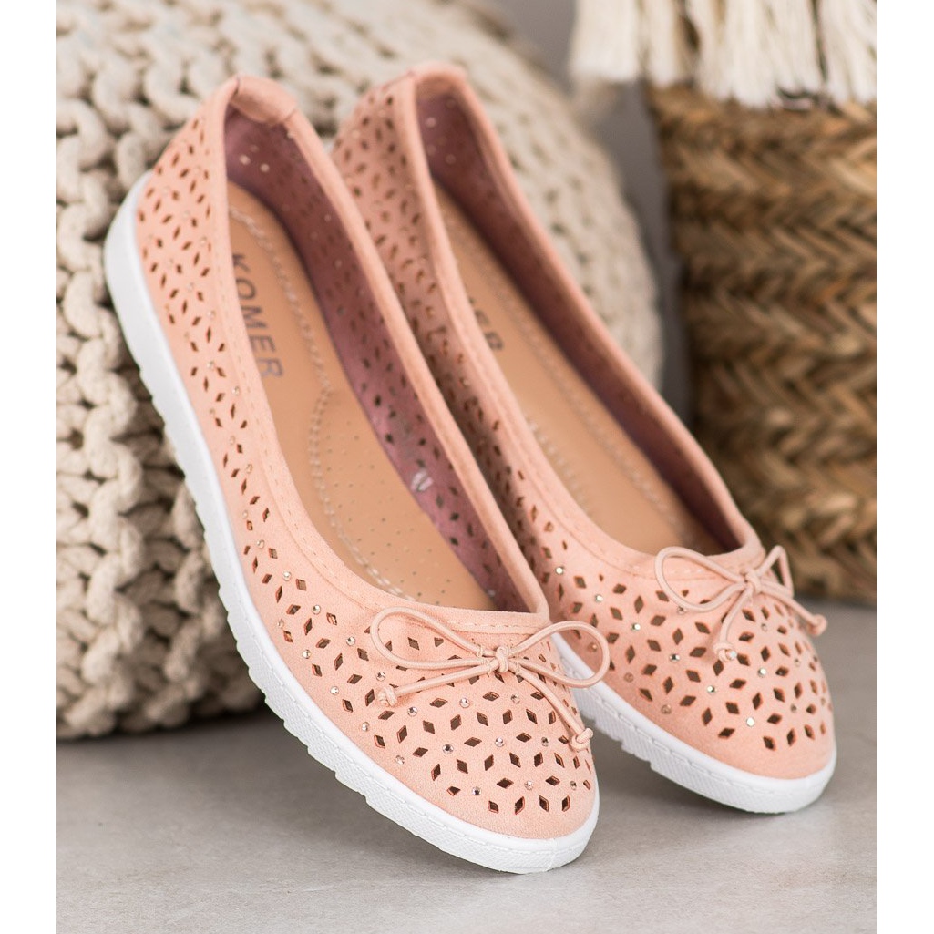 La semelle plate et crantée garantit un confort de port et la tige perforée permet aux pieds de respirer librement, ce qui est extrêmement important lors des journées les plus chaudes. De plus, une décoration délicate sous forme de diamants régulièrement espacés rend ces ballerines non seulement pratiques, mais aussi extrêmement féminines et légères.