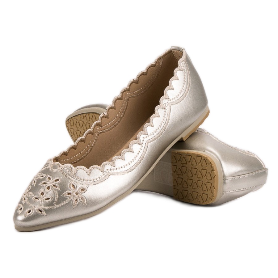 Les bouts pointus et les découpes décoratives sur la tige confèrent à ces ballerines un caractère unique, et de délicates fleurs ajourées sur le devant en font le complément parfait à tout style décontracté. Grâce à la base en plastique lisse et au contrefort souple intégré, vous pourrez profiter de leur légèreté et de leur liberté de mouvement sans sacrifier l'élégance.