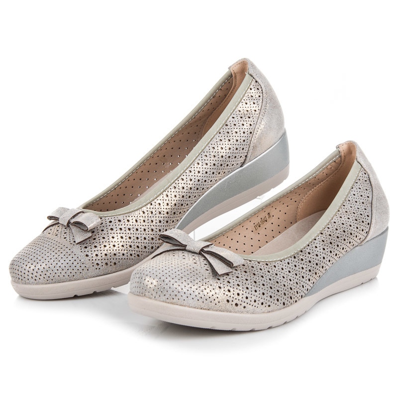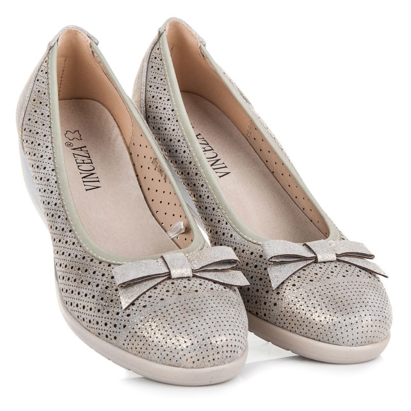 Les ballerines Vinceza avec nœud dans une nuance de gris sont la combinaison parfaite d'élégance et de confort que toute femme à la mode devrait avoir dans sa garde-robe. Fabriquées en cuir écologique de haute qualité, ces ballerines offrent non seulement un look élégant, mais aussi un confort à porter toute la journée.