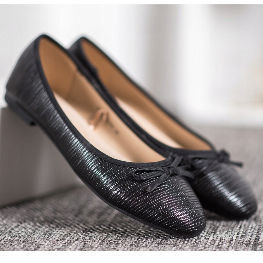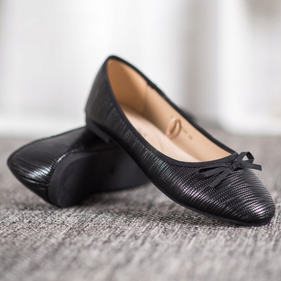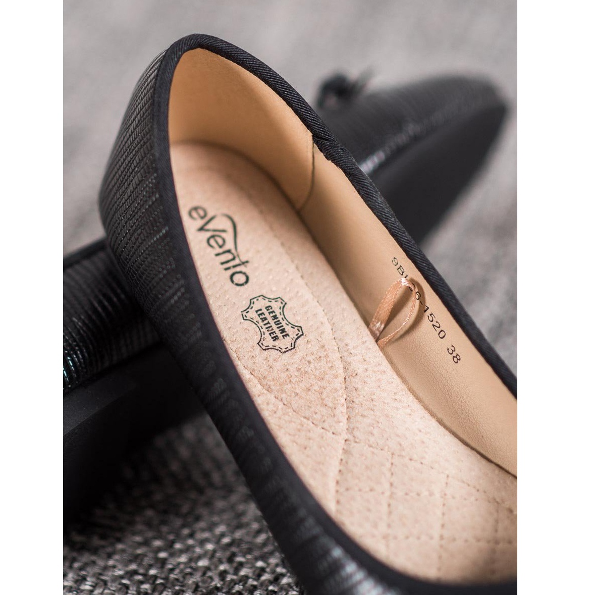Evento prend soin de chaque détail, c'est pourquoi ses ballerines se caractérisent par une finition de haute qualité et une texture intéressante du matériau textile, qui leur confère un caractère unique. Le noir intemporel s'adapte à la large palette de couleurs de votre garde-robe, ce qui en fait un élément irremplaçable de la plupart des styles de tous les jours. Les nœuds décoratifs sur le devant ajoutent du charme et du caractère féminin aux chaussures.