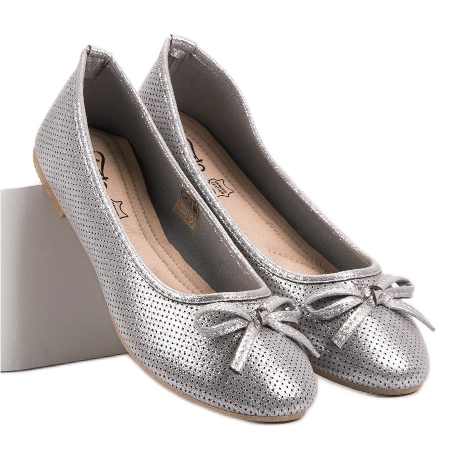 Evento Evento Ballerine En Argent Avec Un Noeud gris