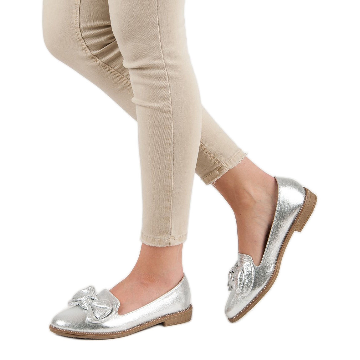 Forever Folie Forever Folie Ballerine En Argent Avec Un Noeud gris