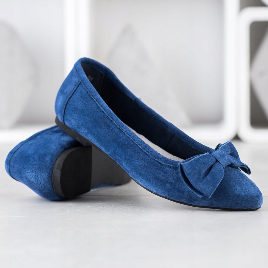 Détails: Filippo Ballerine En Cuir Avec Un Noeud bleu