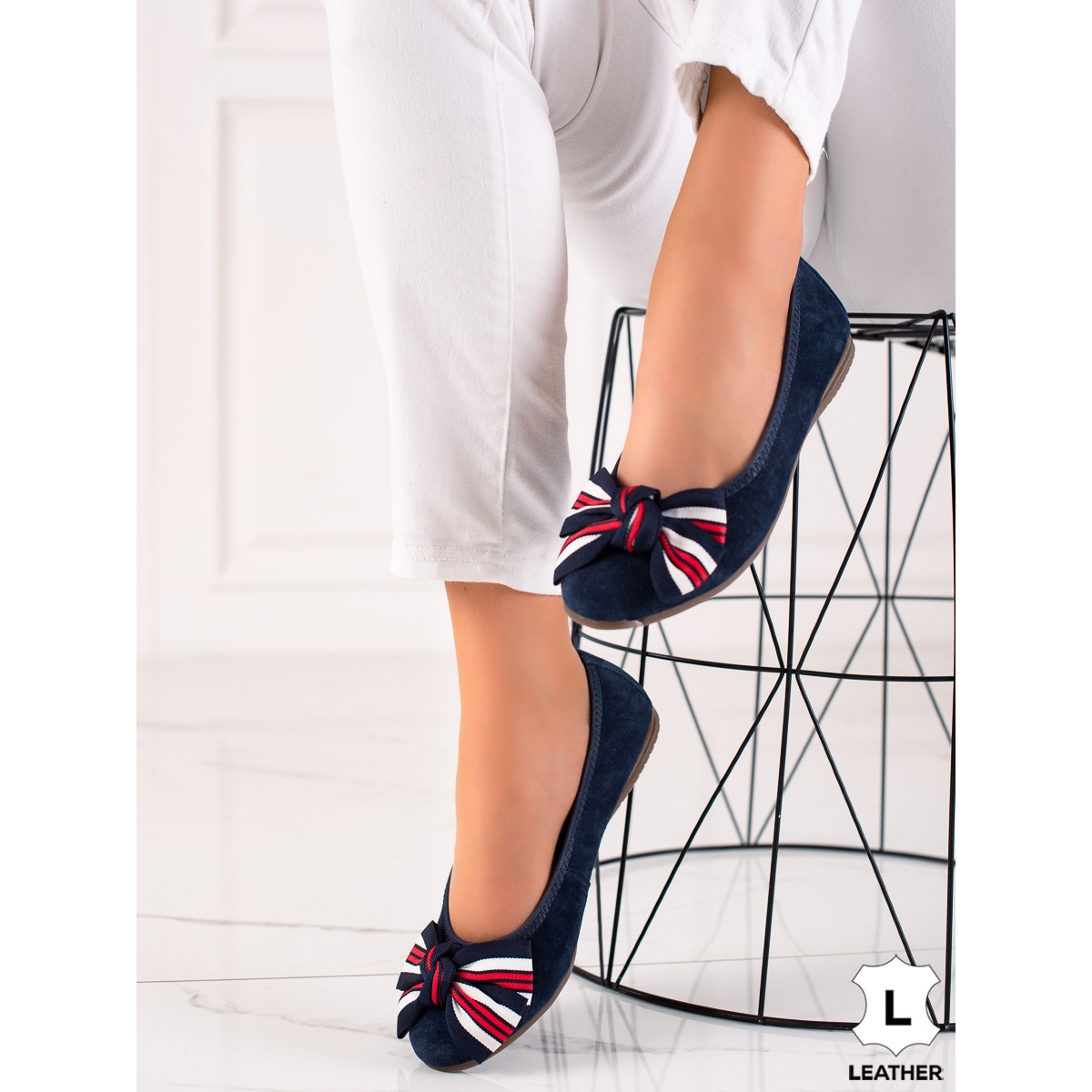 Détails: Filippo Ballerine En Cuir Avec Un Nœud bleu marin