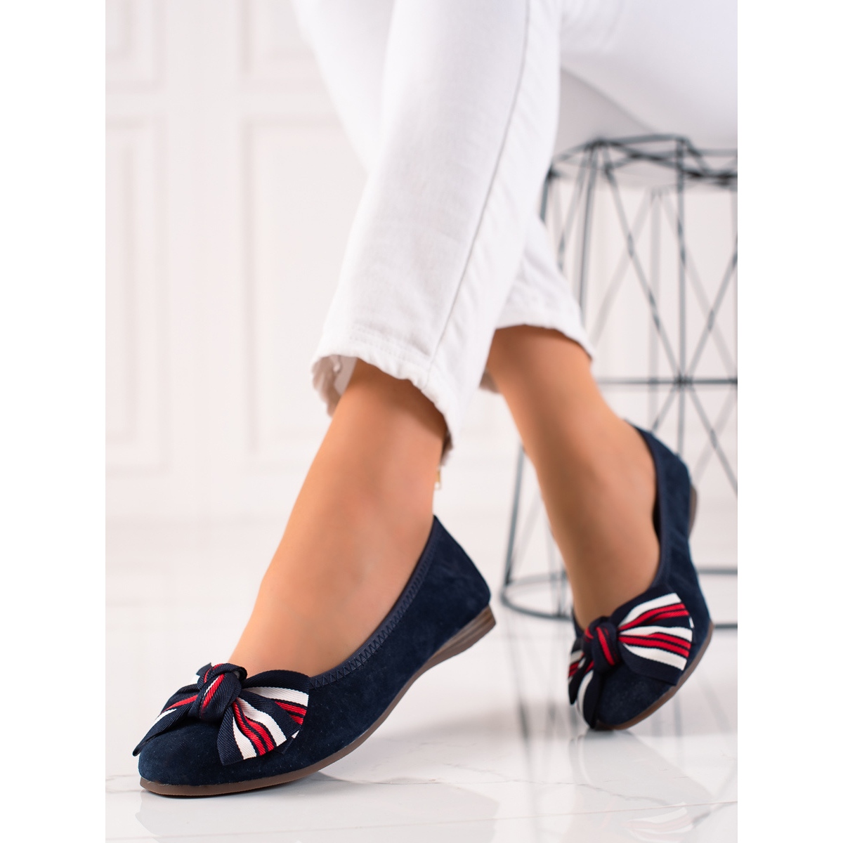 Nous vous présentons des ballerines en cuir élégantes et stylées avec un nœud du fabricant Filippo. Ces belles chaussures bleu marine sont le choix parfait pour les femmes qui apprécient la combinaison du style classique et du confort.