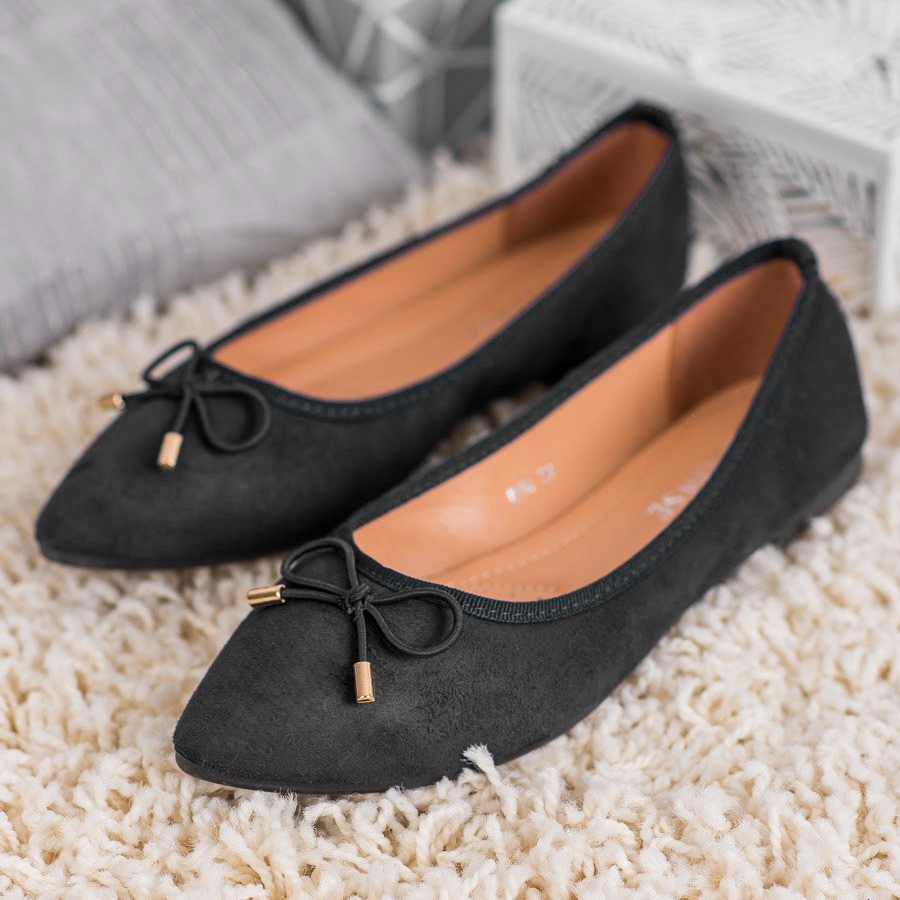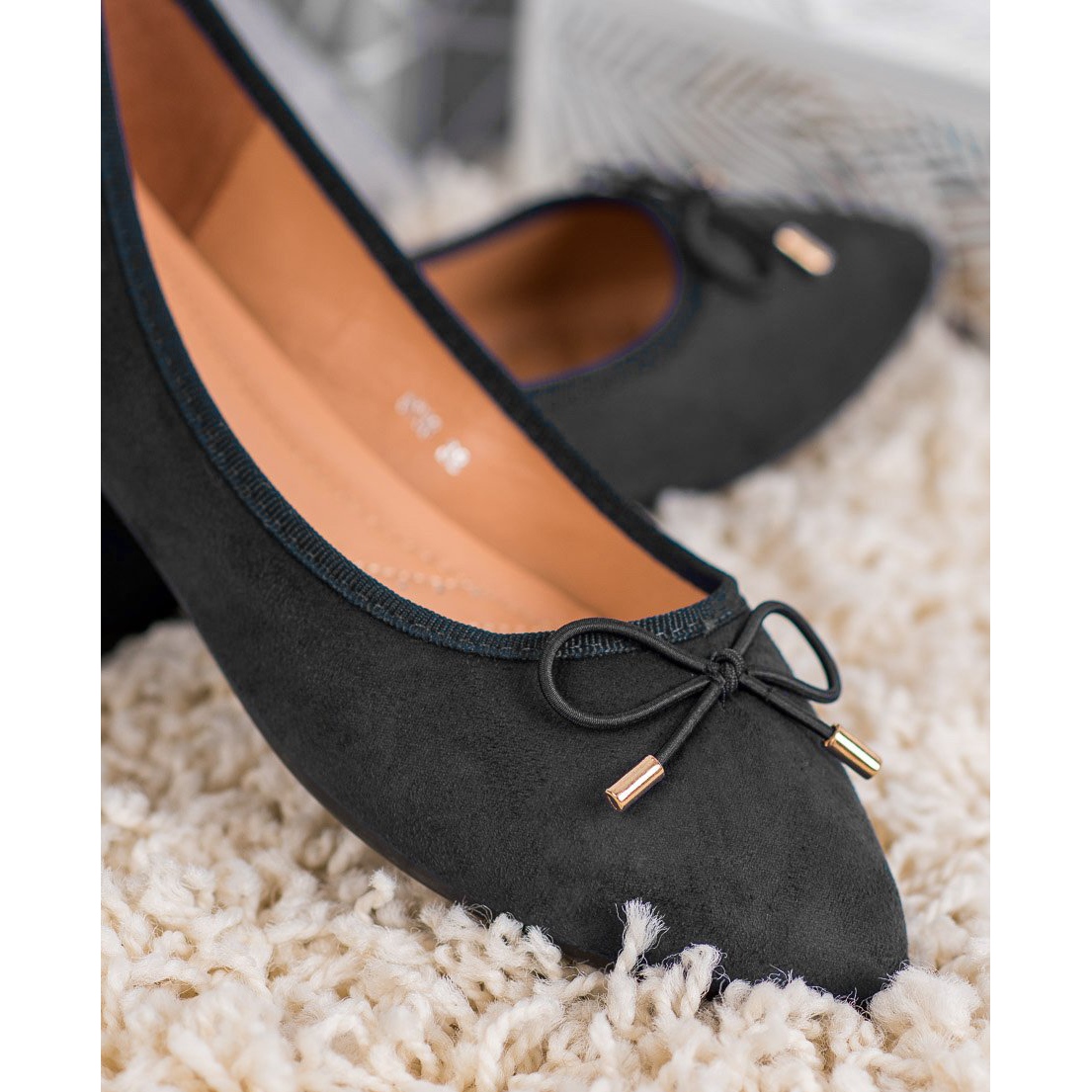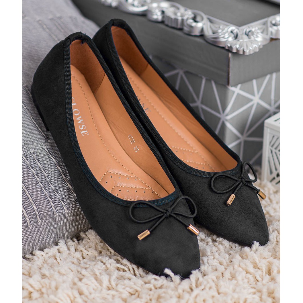 Les ballerines Clowse à bout pointu, noires, sont des chaussures élégantes et stylées qui correspondent parfaitement aux tendances de la mode féminine. Fabriqués dans un matériau semblable au cuir de haute qualité, ils offrent non seulement une apparence attrayante, mais également une durabilité. L'insert intérieur en cuir écologique garantit un port confortable, même pendant une longue journée.