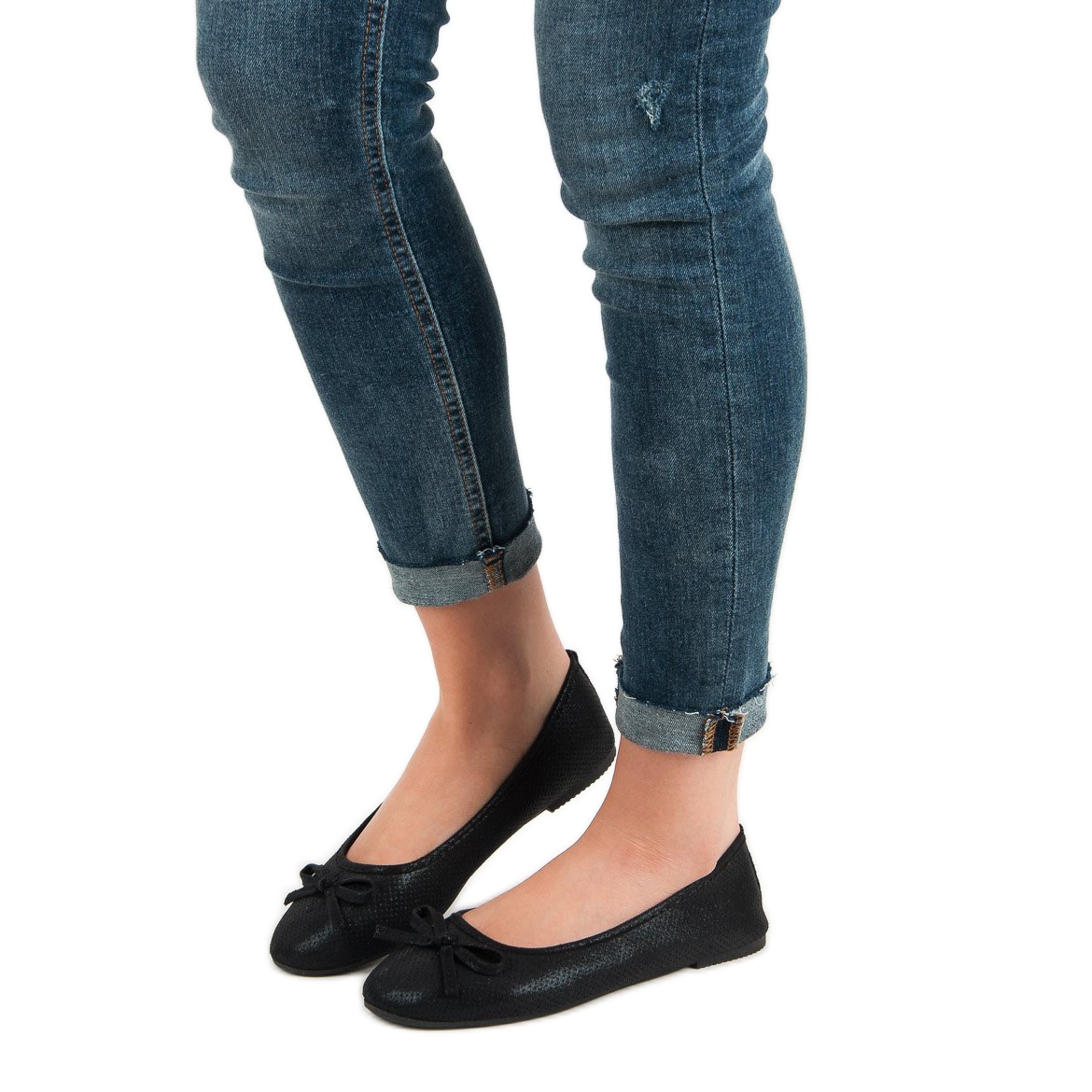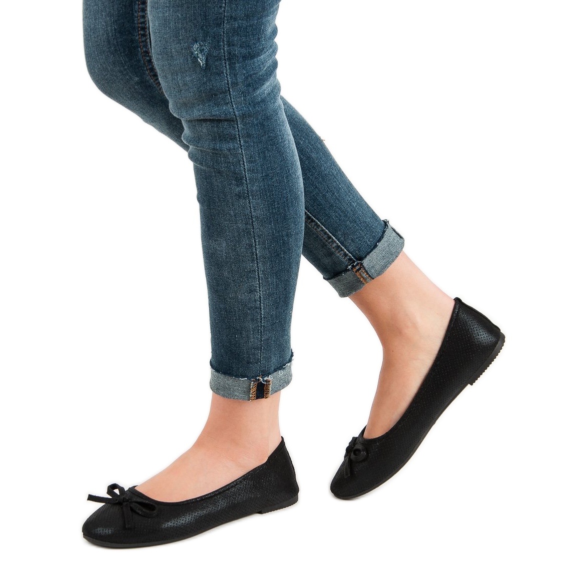 **Ballerines plates noires avec nœud Evento – élégance et confort en un**