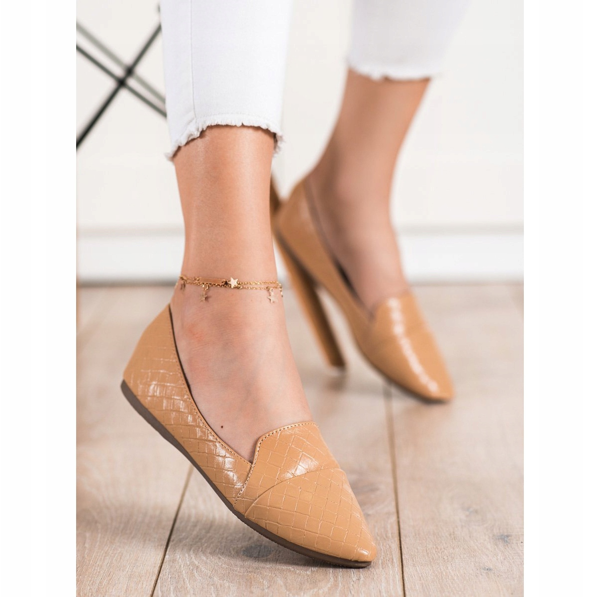 Ces ballerines se caractérisent par un talon doux et fermé et un bout arrondi, qui assure un confort de port tout au long de la journée. La semelle en plastique est lisse, ce qui augmente la stabilité et le confort à chaque pas. Grâce à leur design subtil, ces chaussures s'intègrent parfaitement dans les tendances printemps-été, et leur couleur marron les rend faciles à associer avec différents styles.