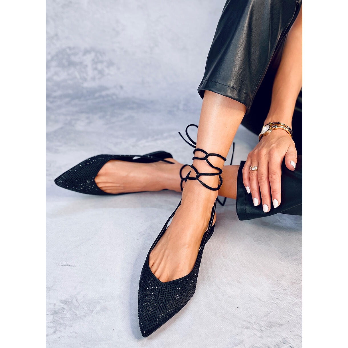 Vonda Ballerines noires à strass à talon ouvert - noires, raffinées et extrêmement féminines