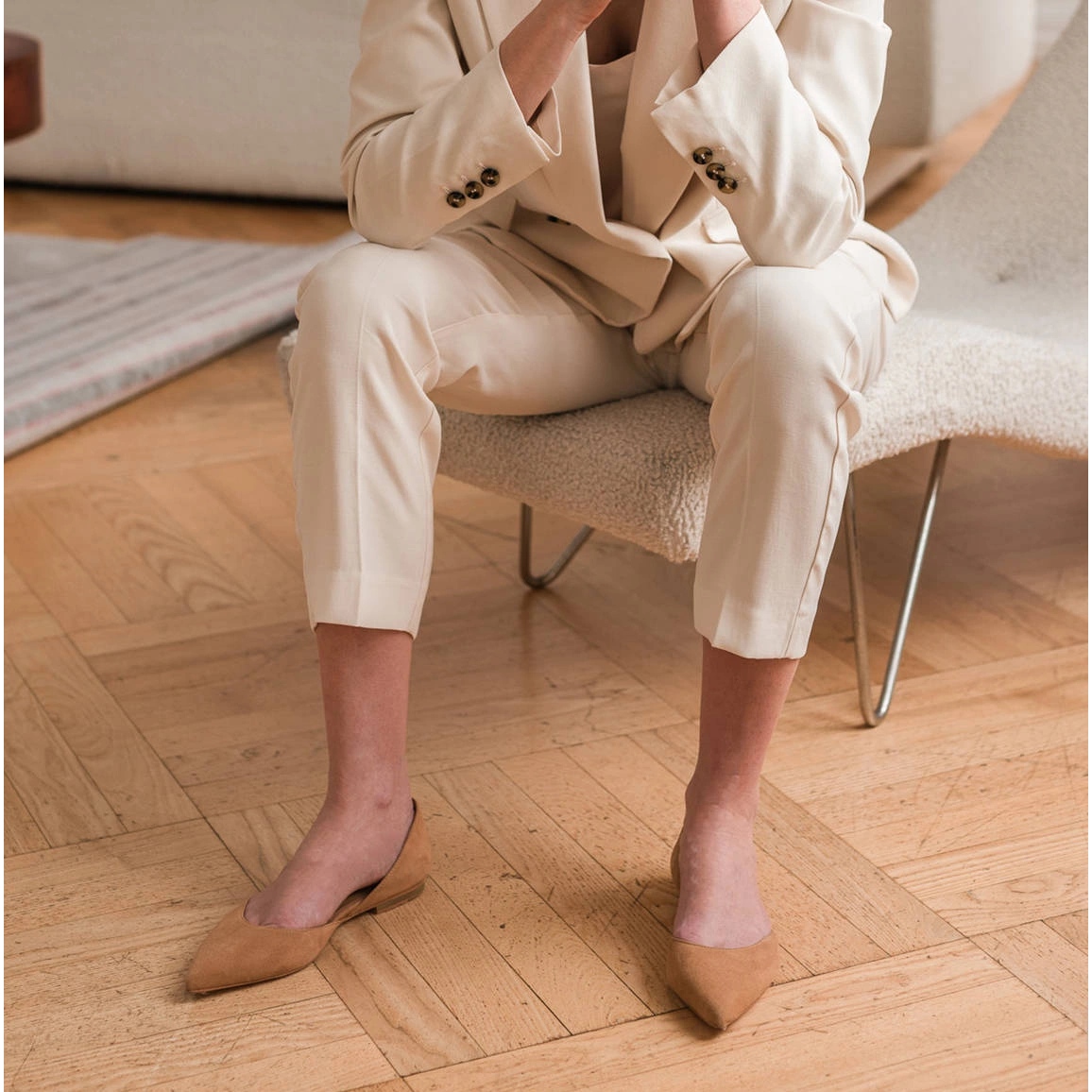 Les ballerines se caractérisent par un bout pointu, ce qui leur donne un look chic et les rend parfaitement adaptées aux styles décontractés et plus élégants. Fabriqués en cuir suédé naturel de haute qualité, ils offrent confort et durabilité, ainsi qu'une apparence élégante.