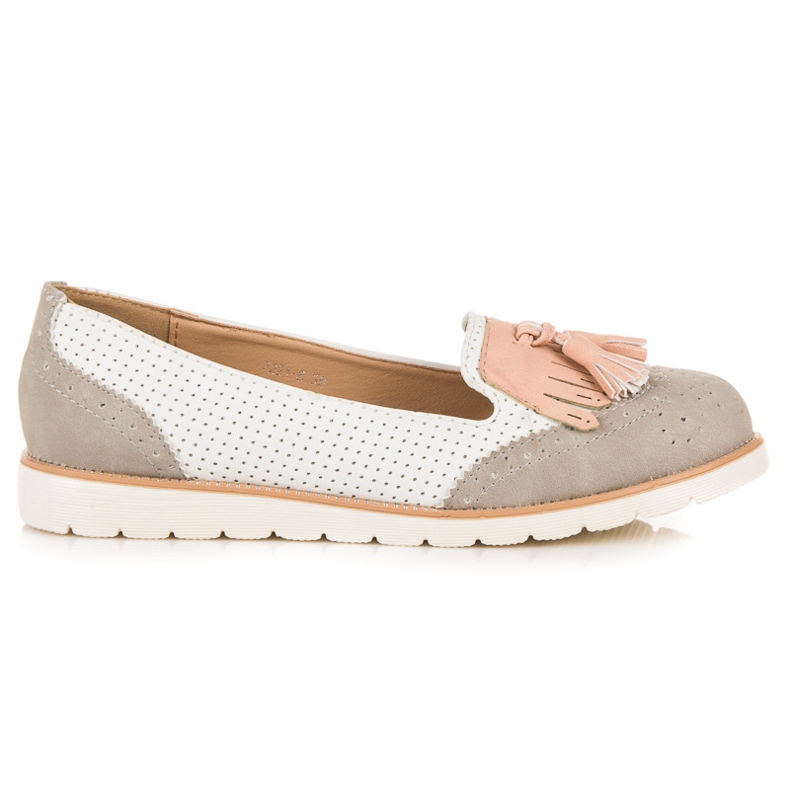 Détails: Vices Ballerines ajourées à franges blanc gris rose