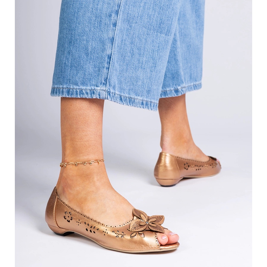Détails: Ballerines ajourées dorées à bout ouvert d'or