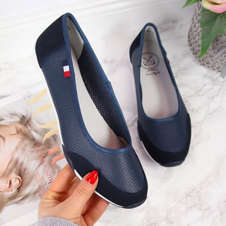 Ballerines ajourées en cuir Filippo W PAW198B bleu marine