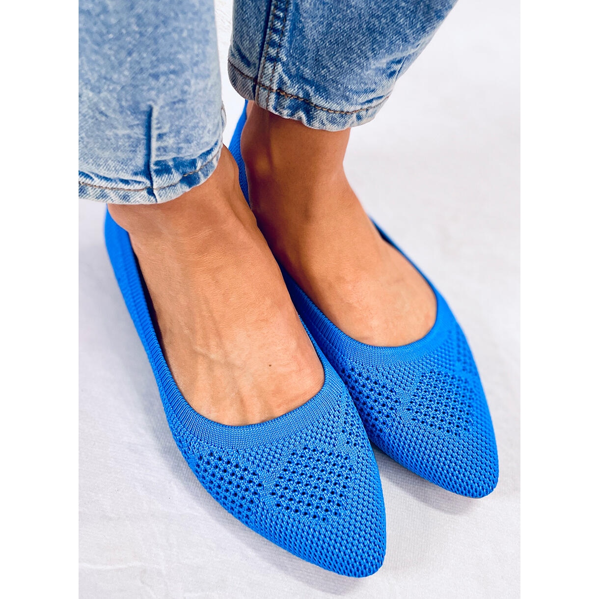 Les ballerines sont disponibles dans une belle couleur bleu profond, qui se marie parfaitement avec les pastels d'été ou le blanc classique. Un talon synthétique plat de 1 cm de haut assure la stabilité et l'ancrage, soulignant le caractère plat typique de ce type de chaussure.
