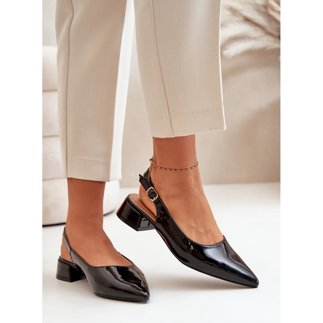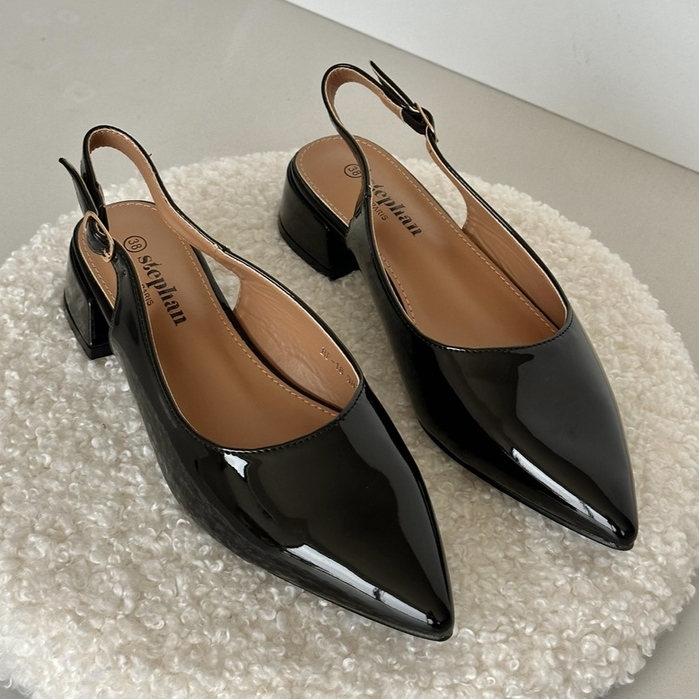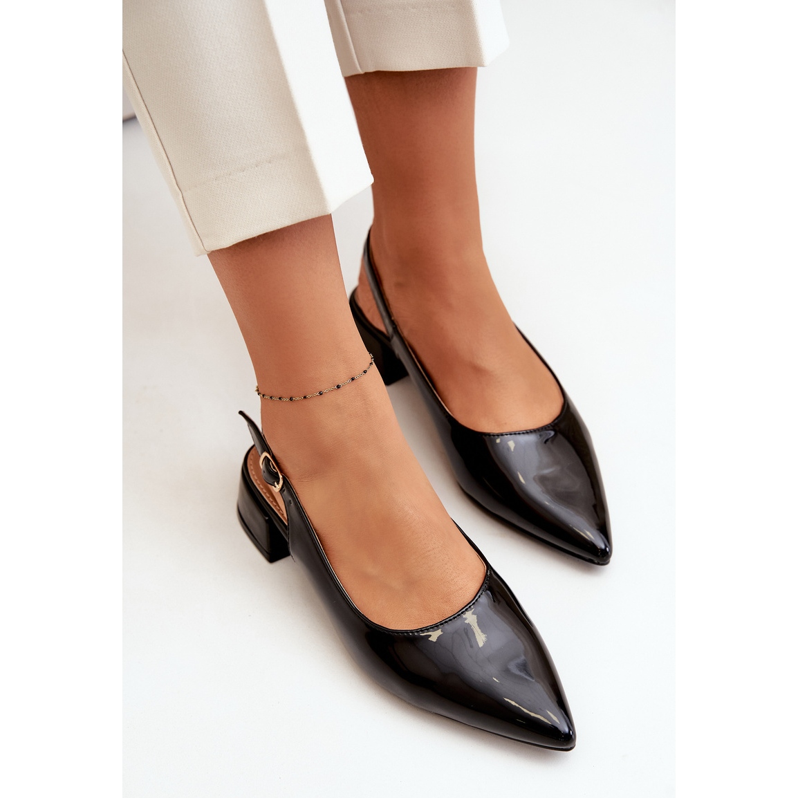 Découvrez l'élégance et le confort avec des ballerines vernies à talon carré bas. Ces chaussures noires uniques se distinguent par des bouts pointus qui allongent optiquement les jambes, leur ajoutant légèreté et élégance. Ces ballerines sont un choix idéal aussi bien pour un usage quotidien que pour des occasions plus formelles, grâce à leur style universel.