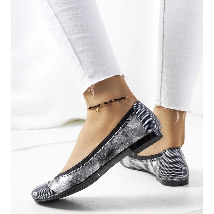 Fabriquées en cuir écologique de haute qualité, les ballerines se distinguent par une teinte métallique argentée appelée Dk.Silver, qui attire le regard et ajoute du chic. Le nez rond et la faible hauteur (6,5 cm) rendent le modèle non seulement élégant, mais aussi extrêmement confortable, parfait pour un style quotidien.