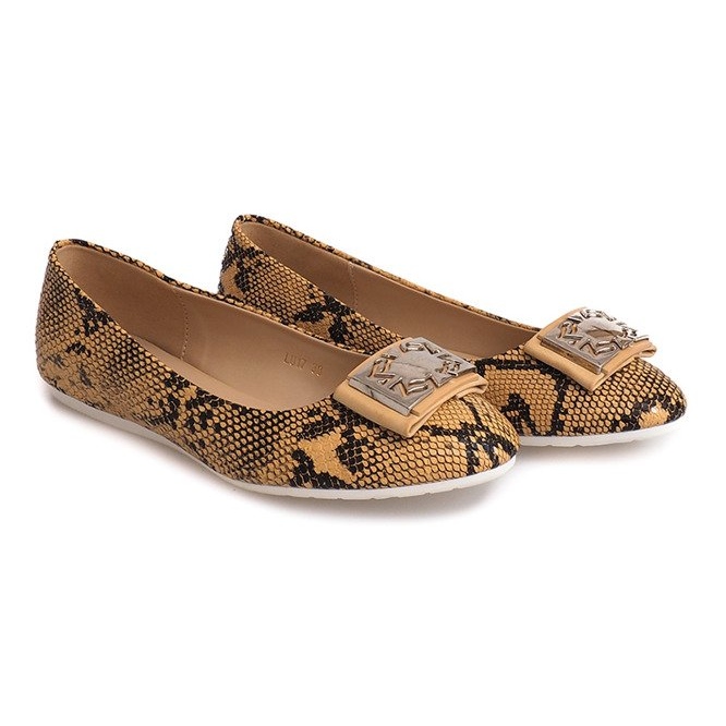 Fabriqués en cuir écologique de haute qualité, ils se caractérisent par un motif peau de serpent unique, qui leur apporte originalité et chic. Un nœud décoratif et une boucle subtile soulignent leur style unique et distinguent les ballerines des autres modèles. Les couleurs beige et noir sont un véritable succès qui se combine facilement aussi bien avec une robe élégante qu'un pantalon décontracté.