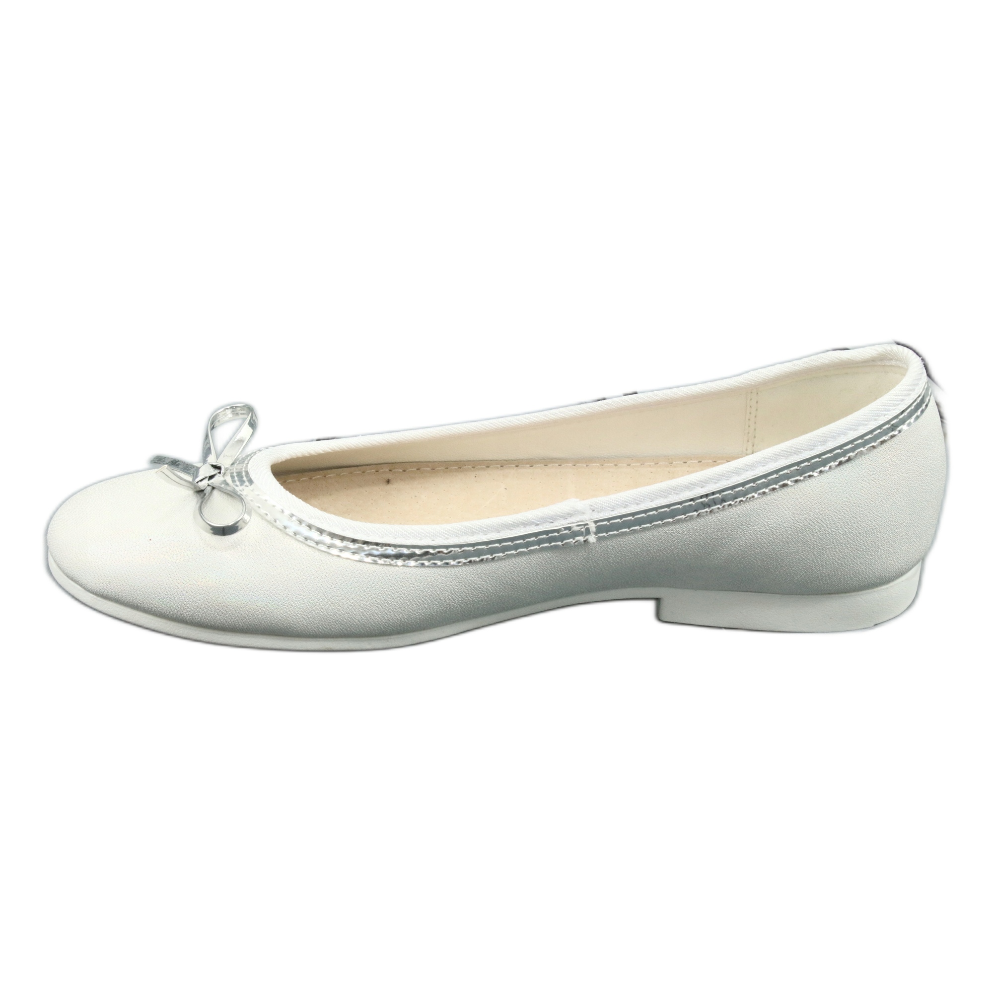 Les ballerines avec nœud en perles blanches d'American Club (modèle GC29/19) sont le choix parfait pour les petites dames. Ces chaussures élégantes, fabriquées en cuir écologique de haute qualité, se distinguent par de subtiles garnitures argentées et un nœud délicat, qui les rendent parfaitement assorties aux styles de tous les jours et aux robes de fête.