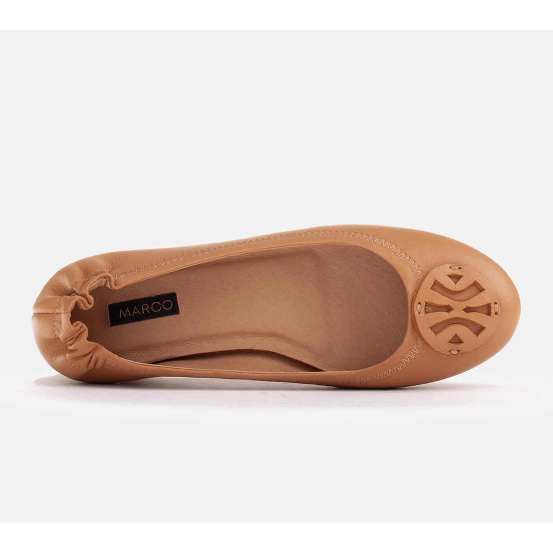 Détails: Marco Shoes Ballerines avec une décoration en cuir plat brun