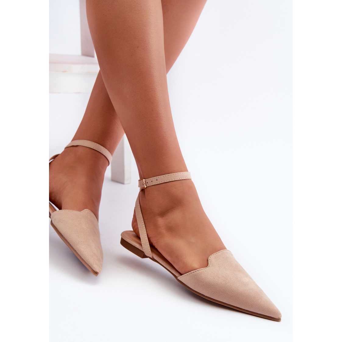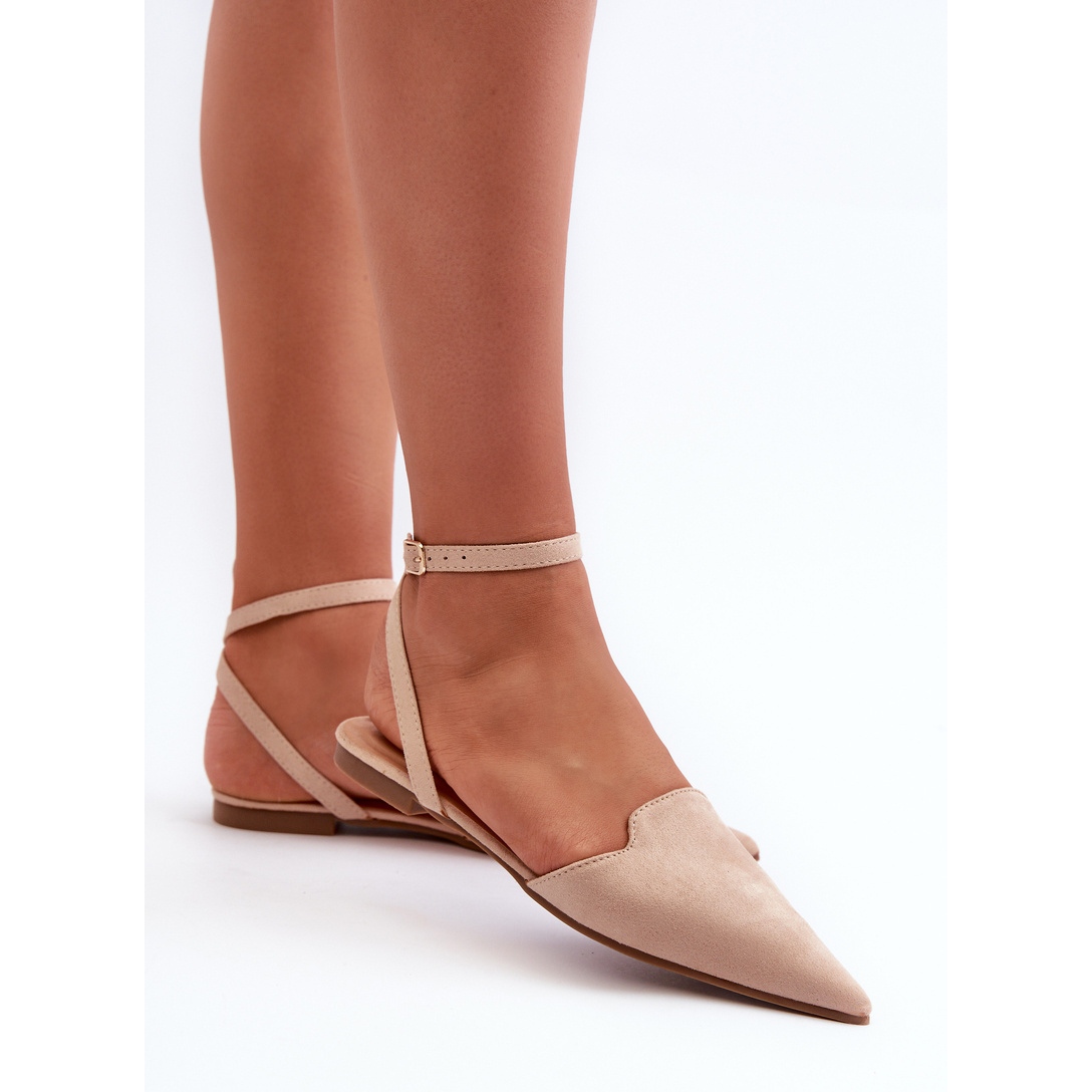 Détails: Ballerines beiges à lacets en daim écologique à bouts pointus Ellesara