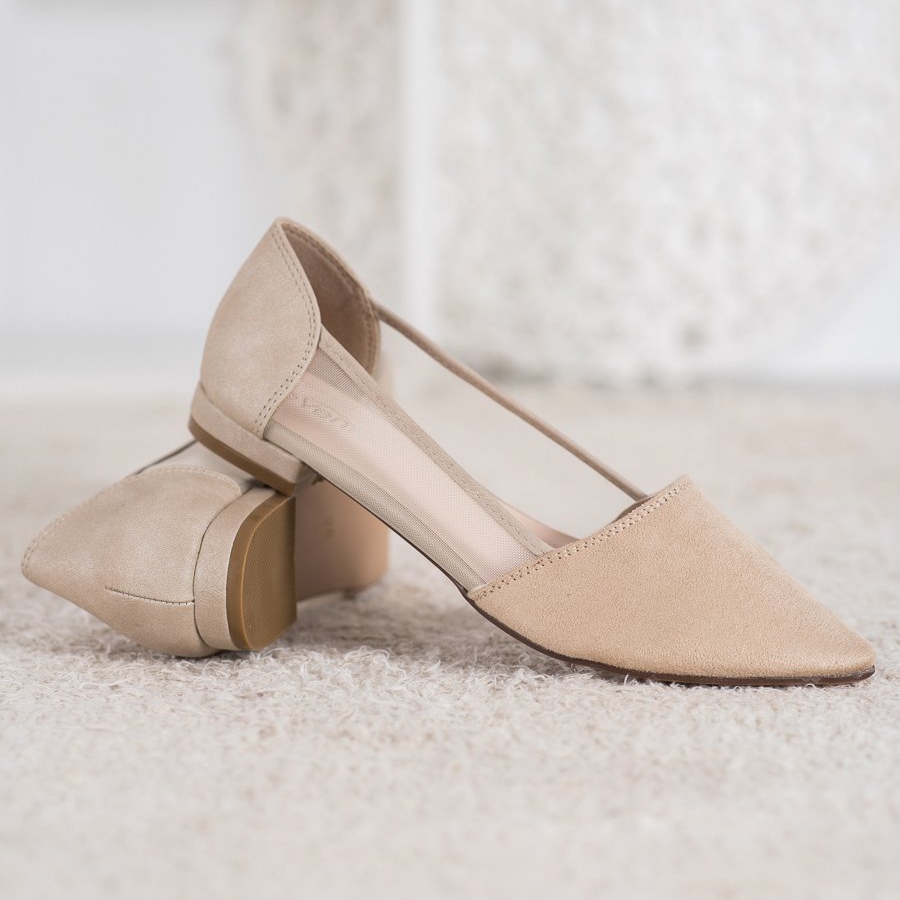 La semelle en plastique est lisse et durable et la hauteur de la plateforme n'est que de 1 cm, ce qui rend les chaussures stables et confortables même lorsqu'elles sont portées toute la journée. Parfaites pour le printemps et l’été, les ballerines beiges avec maille sont un incontournable de la garde-robe de chaque femme.