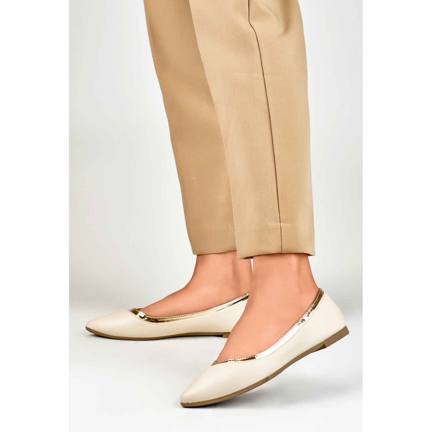 Détails: Ballerines beiges pour femme avec une addition dorée