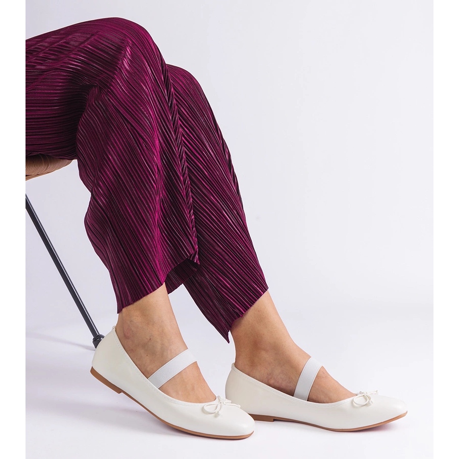 Découvrez le charme des ballerines blanches avec un groupe élastique et un arc décoratif qui complétera parfaitement chaque garde-robe pour femmes. Ces chaussures élégantes et confortables sont le choix parfait chaque jour, ainsi que pour des occasions plus formelles.