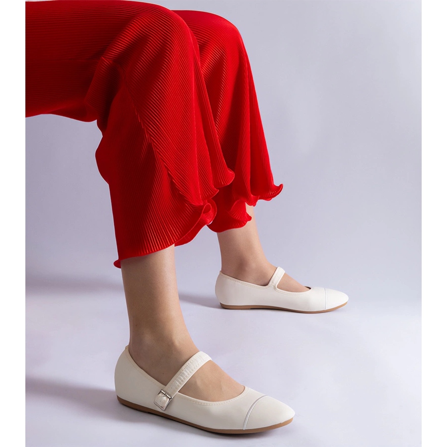 Les ballerines blanches QQ-18 sont un excellent choix pour chaque femme qui veut combiner l'élégance avec le confort quotidien. Leur finition mate et une attache de boucle subtile leur font gagner un caractère unique, parfaitement s'adaptant aux tendances actuelles.