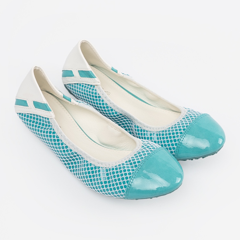 Les ballerines sont faites de cuir écologique de haute qualité, qui garantit la durabilité et la facilité de soins. Leur talon doux et la structure insérée les rendent extrêmement confortables à porter. Un nez rond et une crépine blanche élégante leur donne un caractère unique, grâce à laquelle vous pouvez facilement les combiner avec des robes d'été, des jupes ou des pantalons décontractés.