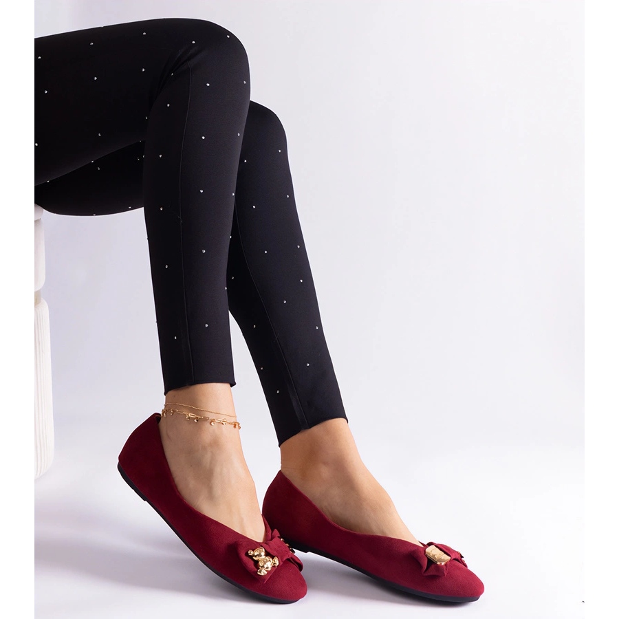 Inna marka Ballerines bordeaux ornées d'un nœud et d'une broche rouge